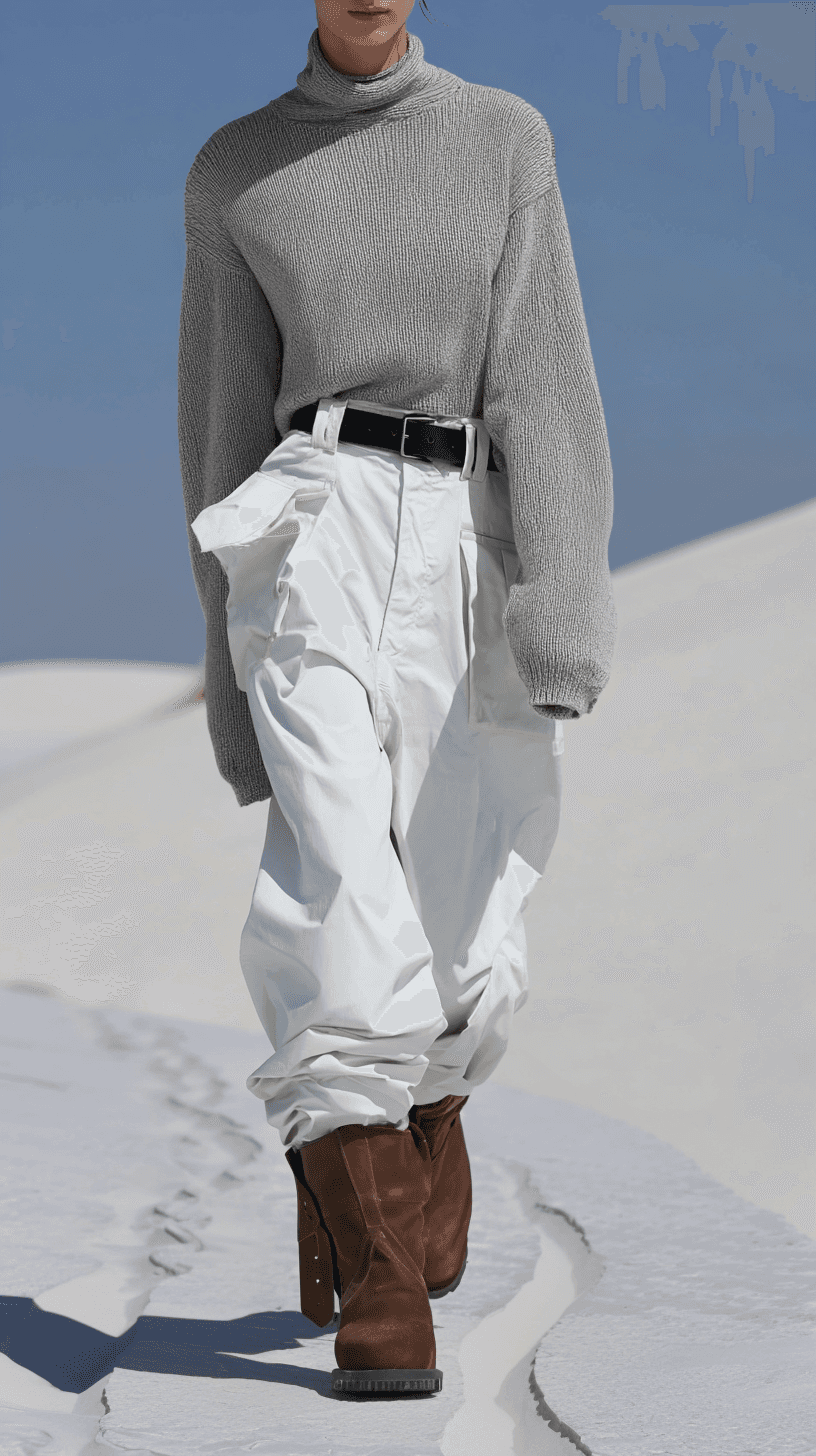 Shows the natural flow and comfort of the outfit through movement and silhouette.